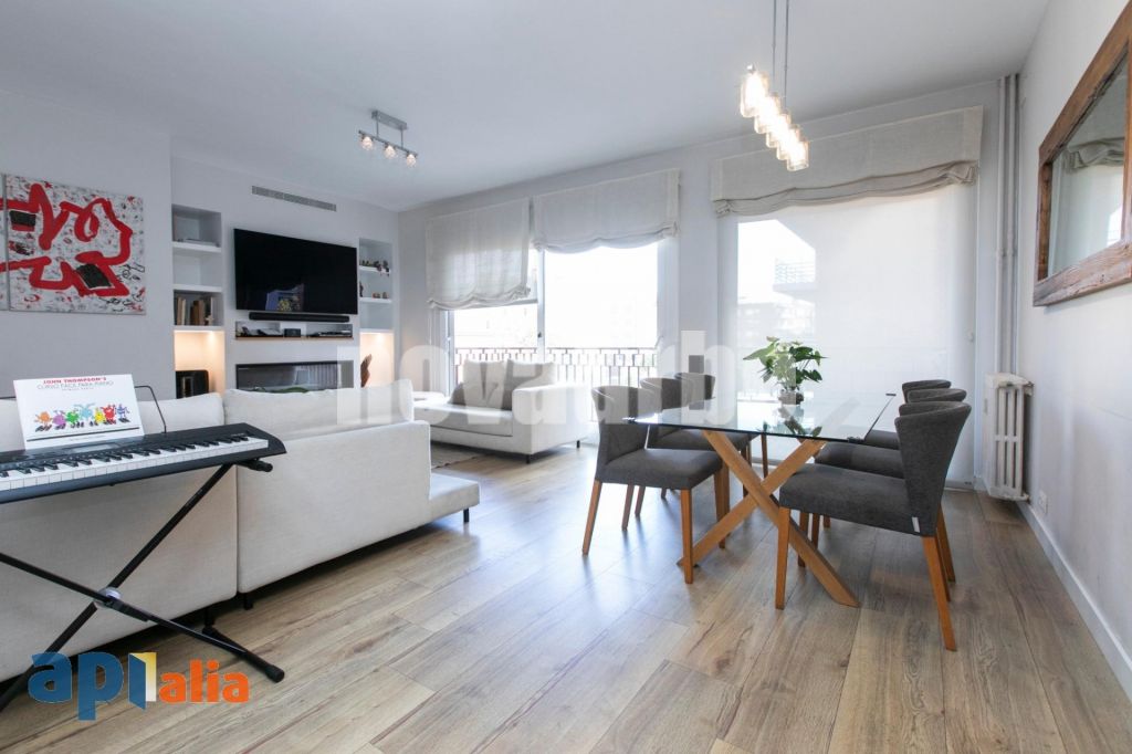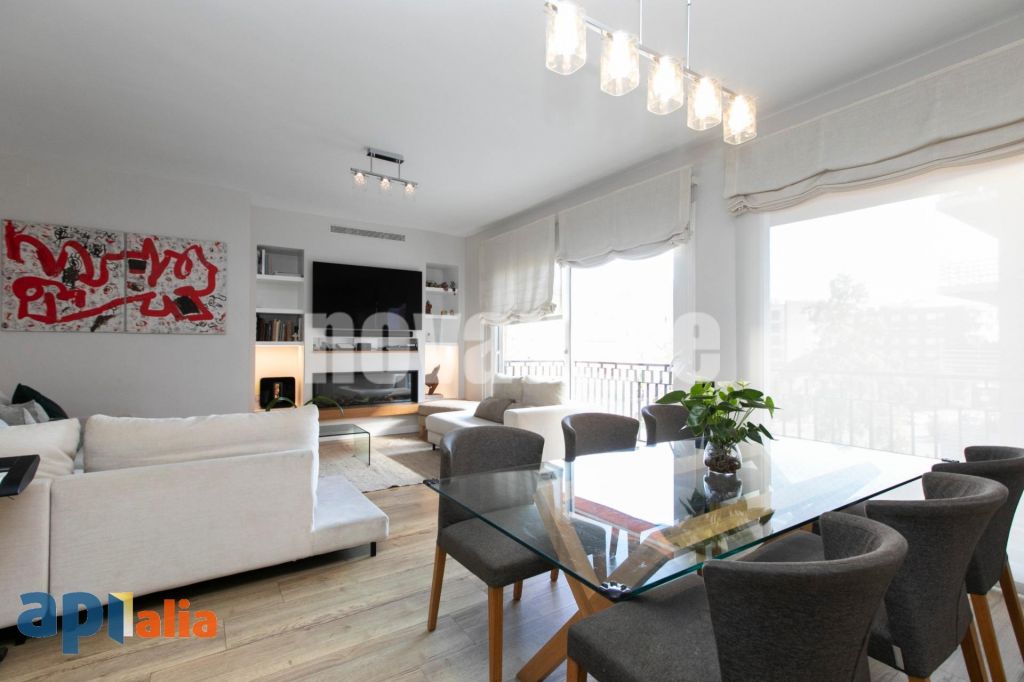 Presentamos esta exclusiva vivienda de 171 m², completamente reformada hace 4 años y ubicada en una de las zonas más demandadas de Tres Torres con concepto de cocina abierta y mucha luz natural. Tercero real de altura. Su distribución moderna y funcional lo convierte en el hogar ideal para familias que buscan confort y calidad de vida y un diseño contemporáneo. Al acceder a la propiedad, encontramos un elegante recibidor abierto a la cocina, que da paso a un amplio salón-comedor con dos grandes balconeras que iluminan toda la estancia y permiten la salida a una terraza alargada orientada al sur, ideal para colocar una mesa y unas sillas y disfrutar del sol y la tranquilidad del barrio. Salón con chimenea de gas. La zona de noche ofrece una distribución perfecta para familias. Dispone de tres habitaciones, destacando una suite principal con gran armario, baño con plato de ducha y una práctica zona de despacho. Las otras dos habitaciones, una doble y una individual, están conectadas por una puerta corredera, lo que permite crear una amplia sala de juegos. Estas dos estancias comparten una zona de estudio independiente y un baño completo con bañera. Complementa la vivienda una zona de servicio con dormitorio y baño propio. La cocina office, luminosa y totalmente exterior, es una de las grandes protagonistas. Cuenta con amplia encimera, abundante almacenaje y un diseño moderno con placa de cocción integrada y campana extractora oculta. Dispone de espacio para mesa y sillas y conecta con una espaciosa zona de lavandería ventilada al exterior. La vivienda se presenta en perfecto estado, reformada con materiales de alta calidad: cocina de la marca Santos, suelo de parquet de roble natural, armarios empotrados en todas las estancias, aire acondicionado por conductos, calefacción central por gas del edificio y ventanas de aluminio con aislamiento térmico. Una propiedad preparada para entrar a vivir sin necesidad de realizar mejoras adicionales. La ubicación es inmejorable, a pocos pasos de la estación de Ferrocarriles de Tres Torres, los Cines Gran Sarrià, prestigiosas clínicas, colegios y una excelente red de autobuses. La finca dispone de servicio de conserjería y dos ascensores: uno principal y otro de servicio, garantizando la máxima comodidad. Una propiedad única por ubicación, distribución y calidad. Lista para entrar a vivir. No te pierdas esta oportunidad. ¿Vienes a conocerlo? Llámanos y prepararemos encantados una visita.
